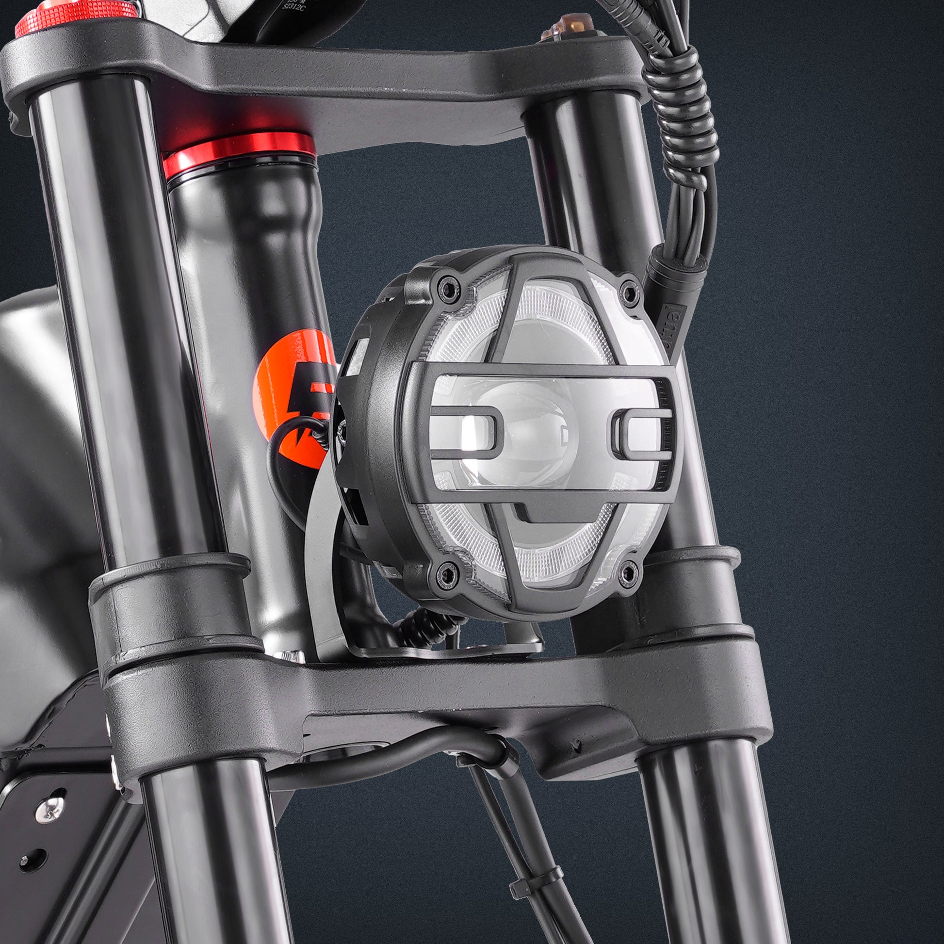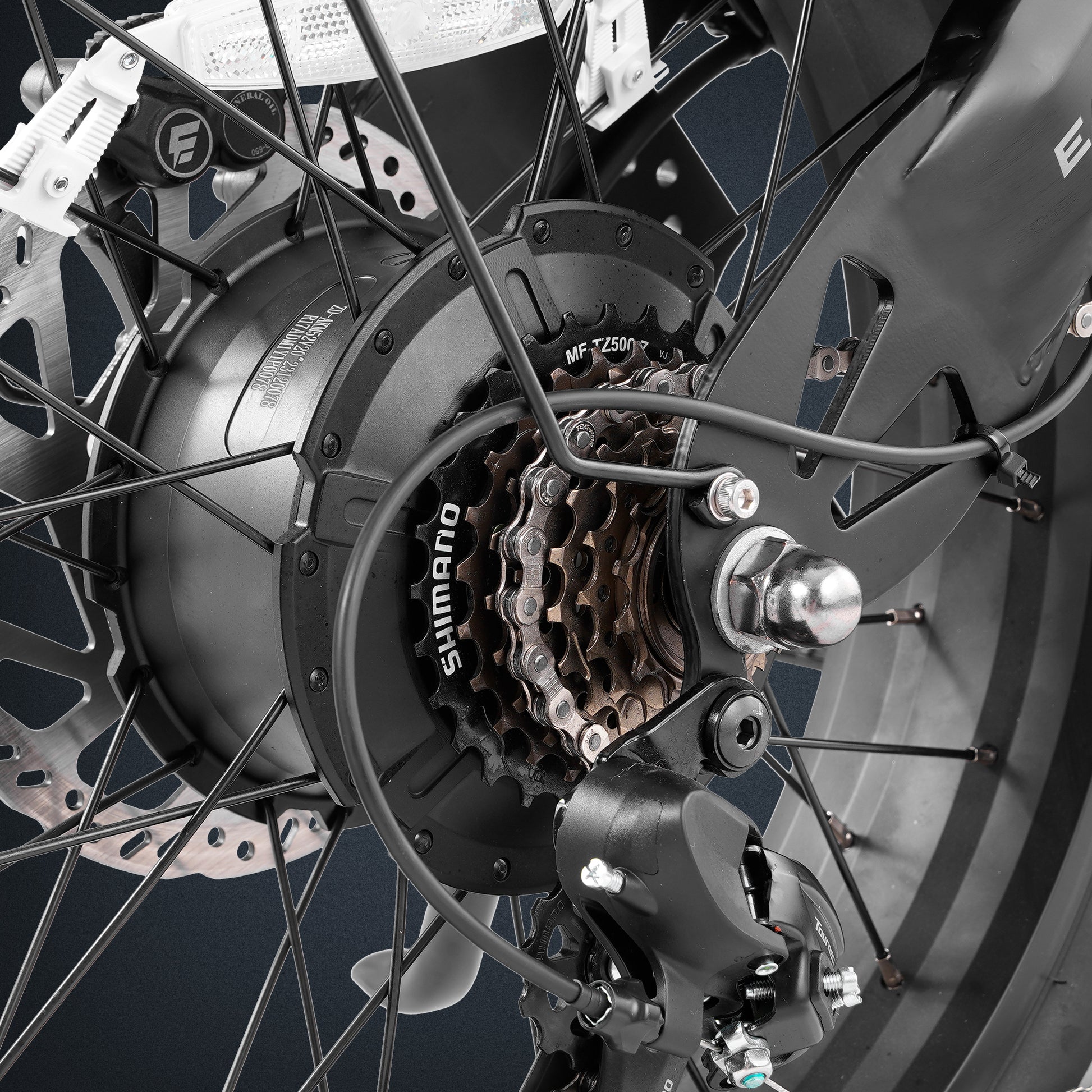 The ROMEO II is a powerful, comfort-focused fat-tire e-bike built for performance and endurance. Dual 1250W hub motors (total 2500W peak) deliver 2 × 100 Nm for decisive take-offs and secure traction, while the 52V 60Ah (3120 Wh) battery supports up to 120 miles with PAS. 80 mm front air suspension plus rear air shock with damping keep the bike composed on pavement and dirt, and hydraulic disc brakes with motor cutoff ensure confident control at higher speeds (37–40 mph / ~60–64 km/h). 20"×5" tires add grip and comfort; a Shimano 7-speed drivetrain and cruise control round out a platform ready for long commutes, urban exploration, and off-road adventures.